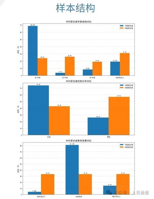 本次调查采用标准化问卷设计,共设置28个核心问题,采用线上线下相结合的方式,收集了来自中国和印度的1854份有效样本,涵盖两国不同性别、学历、职业等方面的受访者。
